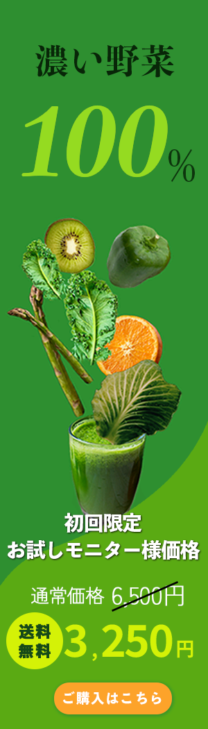 商品名を認知してもらうためジュースの濃厚さが伝わるよう「濃い野菜」のフォントカラーは深緑を使用し、「100」は色の違いとフォントサイズでジャンプ率を高め、目立たせました。